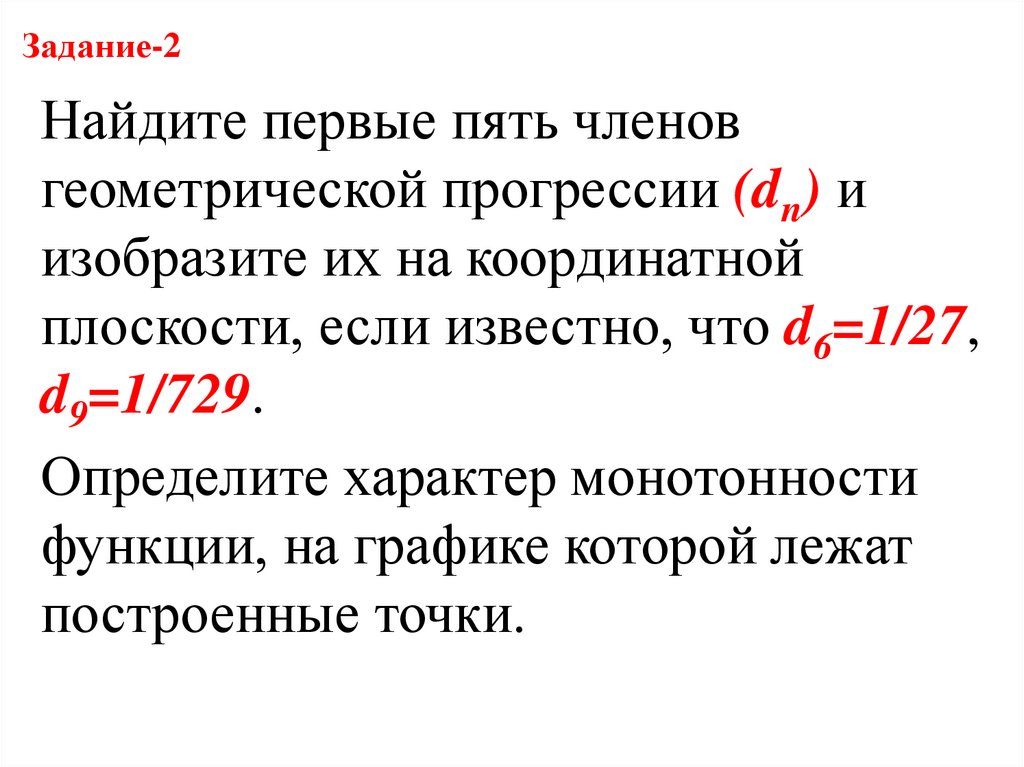 3. Изображение членов геометрической прогрессии точками на координатной плоскости