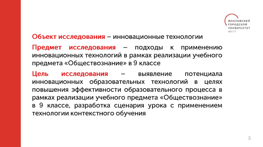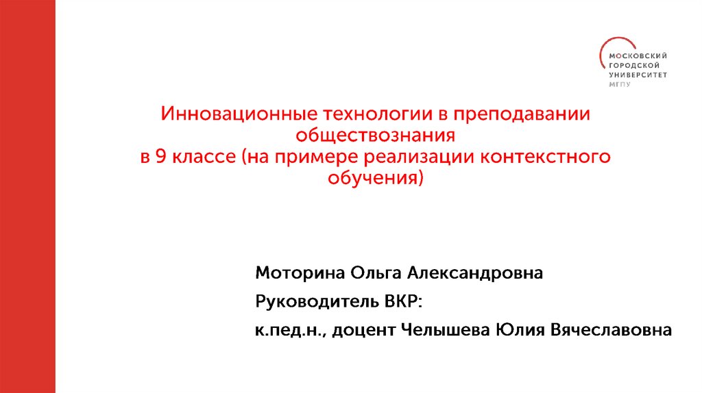 1. Инновационные технологии в преподавании обществознания в 9 классе (на примере реализации контекстного обучения)
