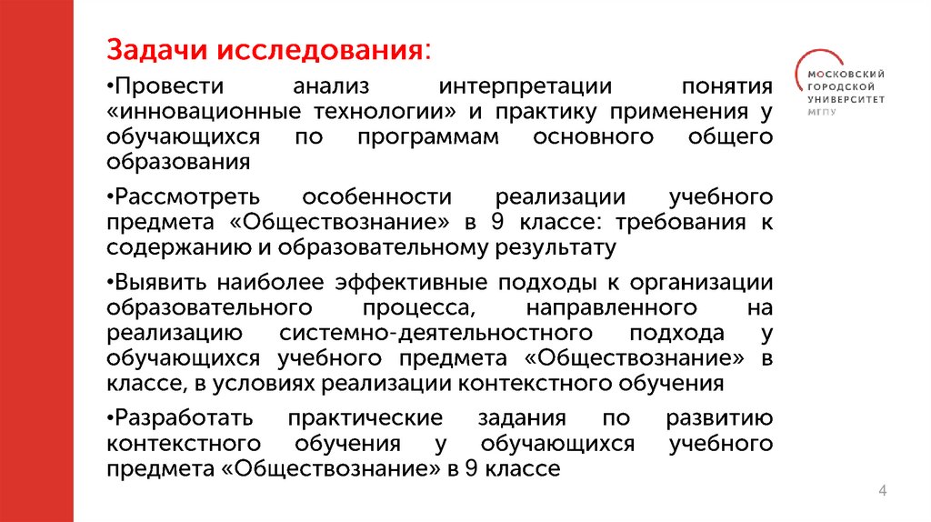 Инновационные технологии в преподавании обществознания в 9 классе (на примере реализации контекстного обучения)