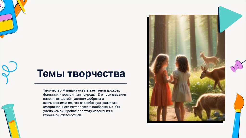 Темы творчестваТворчество Маршака охватывает темы дружбы,