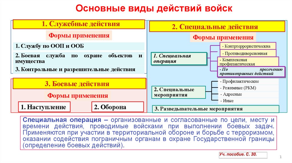 Служебные действия - Служба по ООП и ООБМероприятия, проводимые войсками в