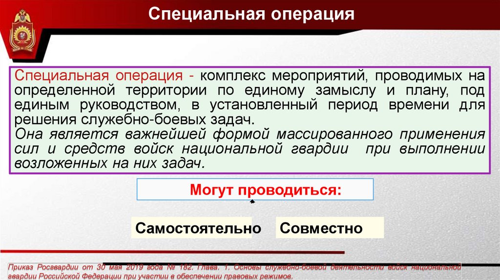 Специальная операцияСпециальная операция - комплекс мероприятий, проводимых на