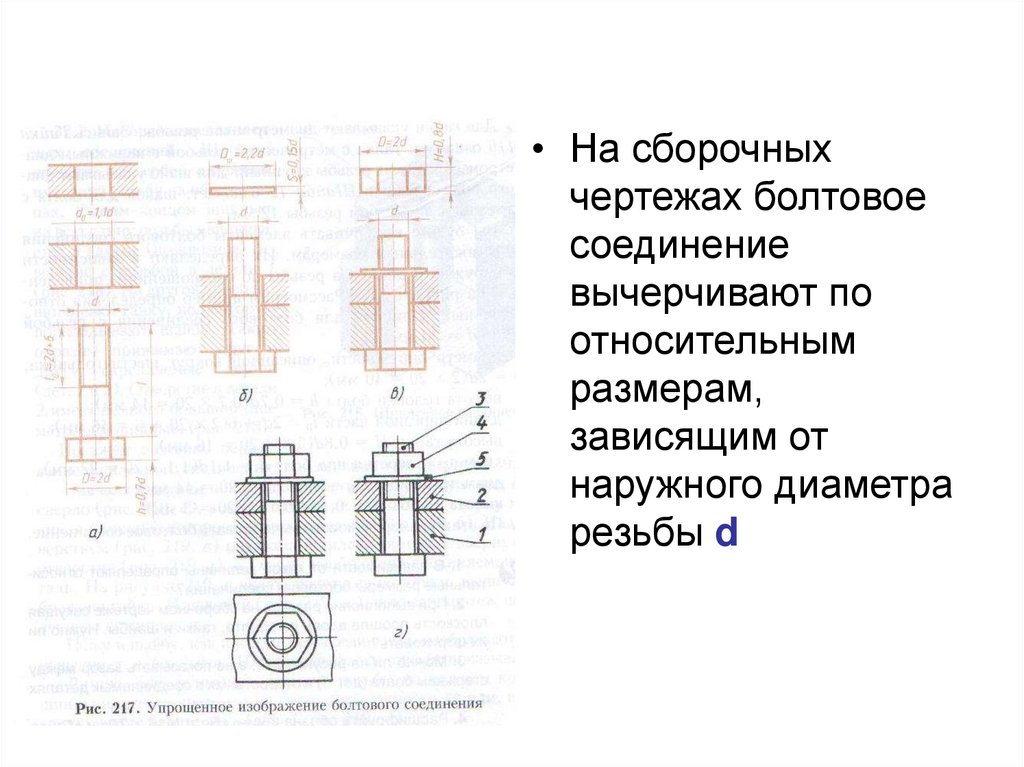 • На сборочныхчертежах болтовое
