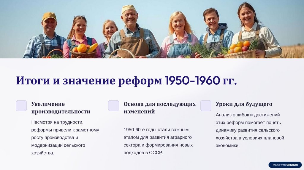 Итоги и значение реформ 1950-1960 гг.Увеличение