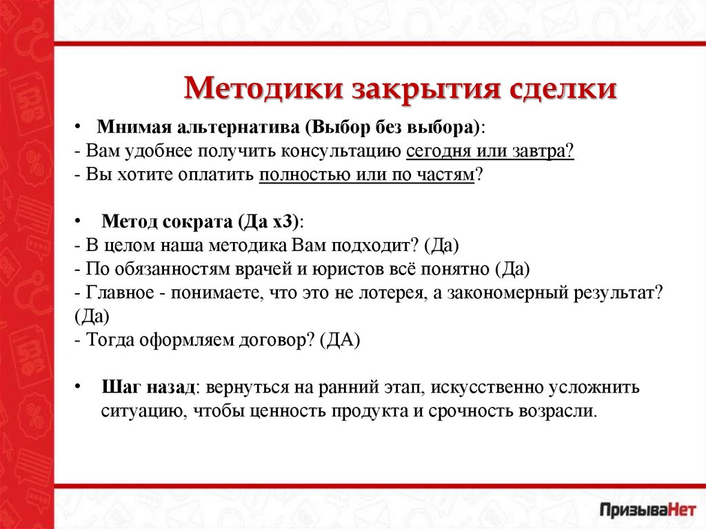 Методики закрытия сделки• Мнимая альтернатива (Выбор без выбора):