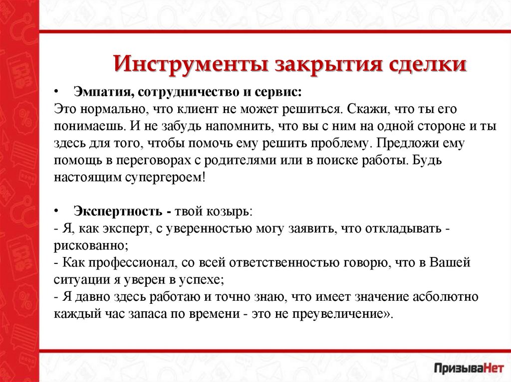 Инструменты закрытия сделки• Эмпатия, сотрудничество и сервис: