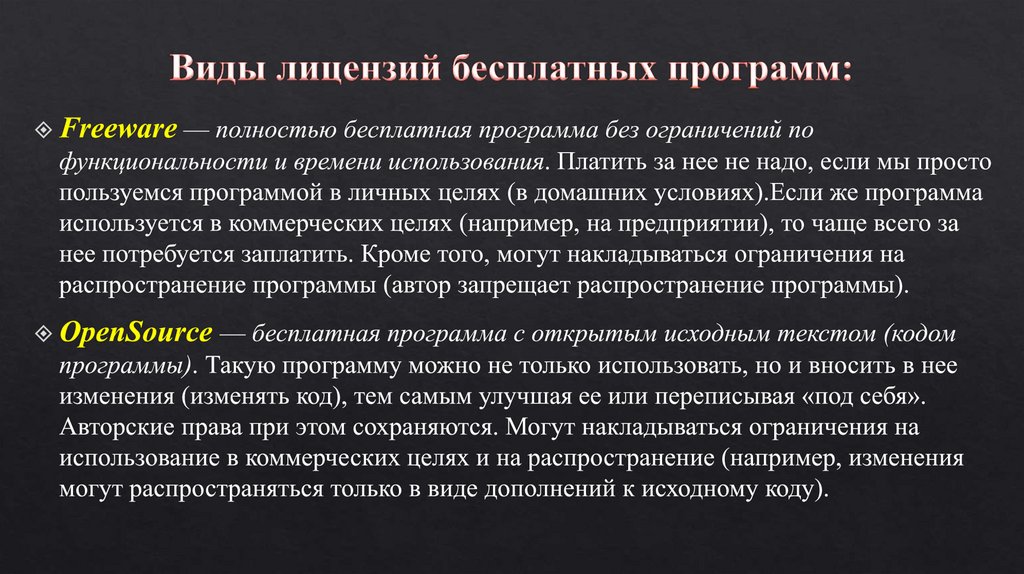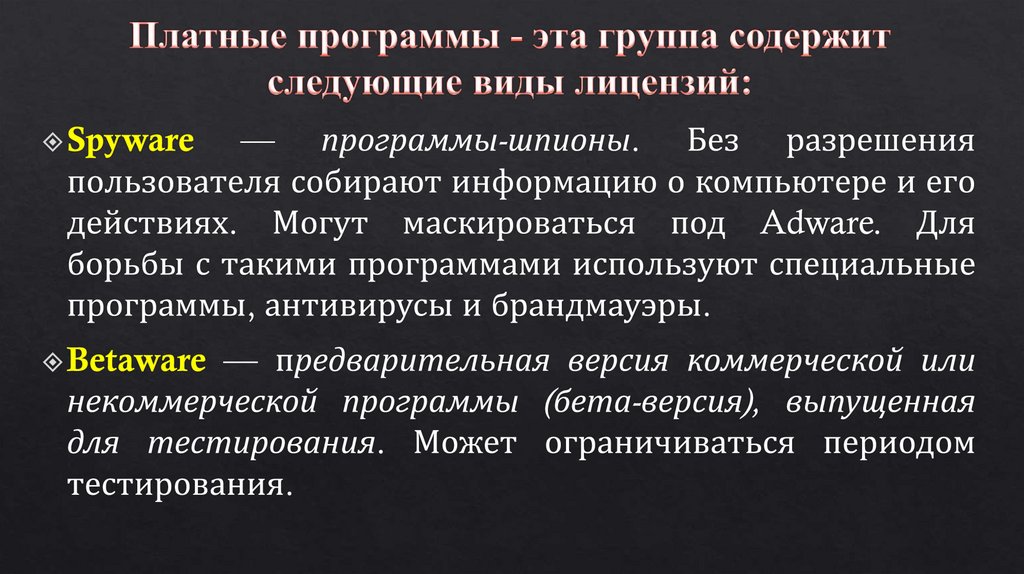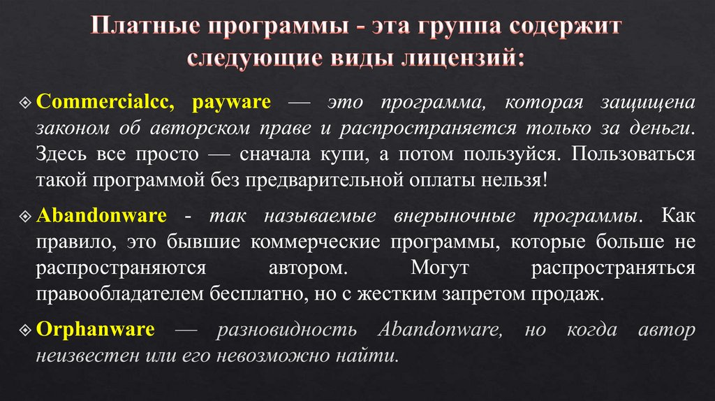 8. Платные программы - эта группа содержит следующие виды лицензий: