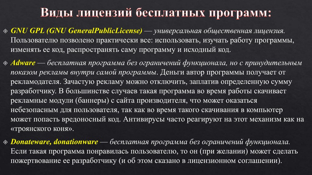 9. Платные программы - эта группа содержит следующие виды лицензий: