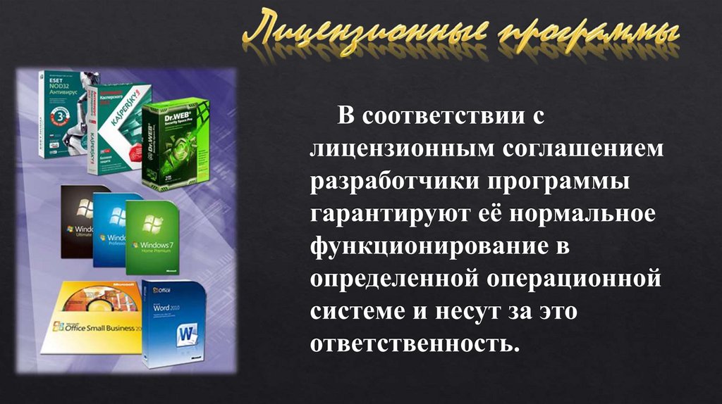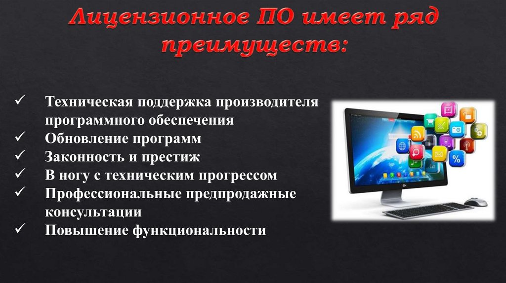 18. Преимущества лицензионного и недостатки нелицензионного программного обеспечения