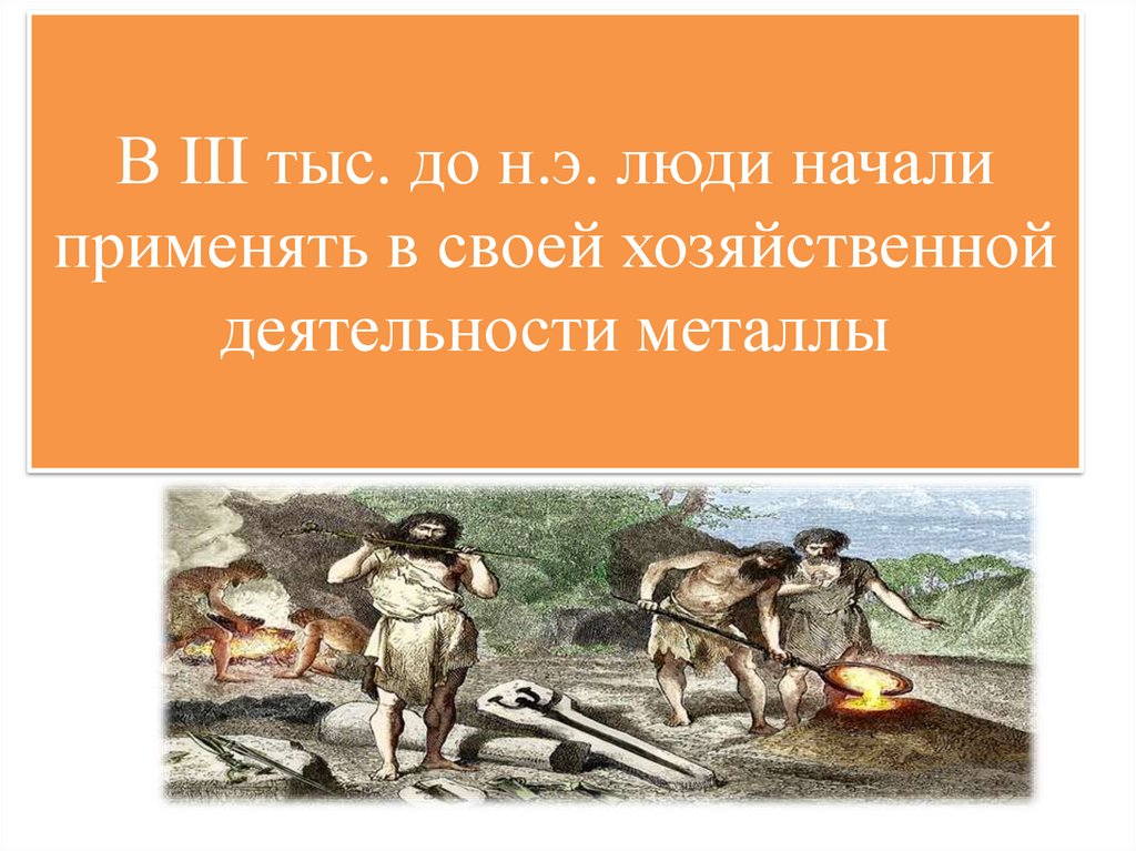 2. В III тыс. до н.э. люди начали применять в своей хозяйственной деятельности металлы