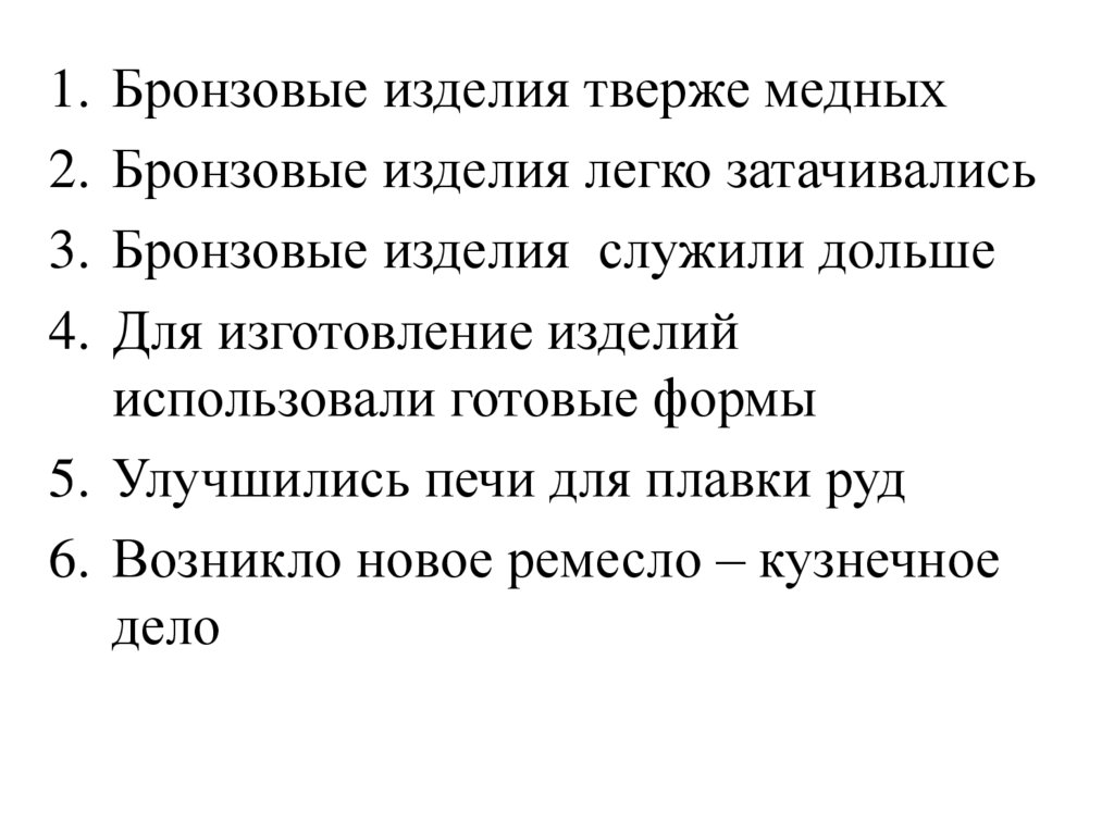 1. Бронзовые изделия тверже медных2. Бронзовые изделия легко затачивались