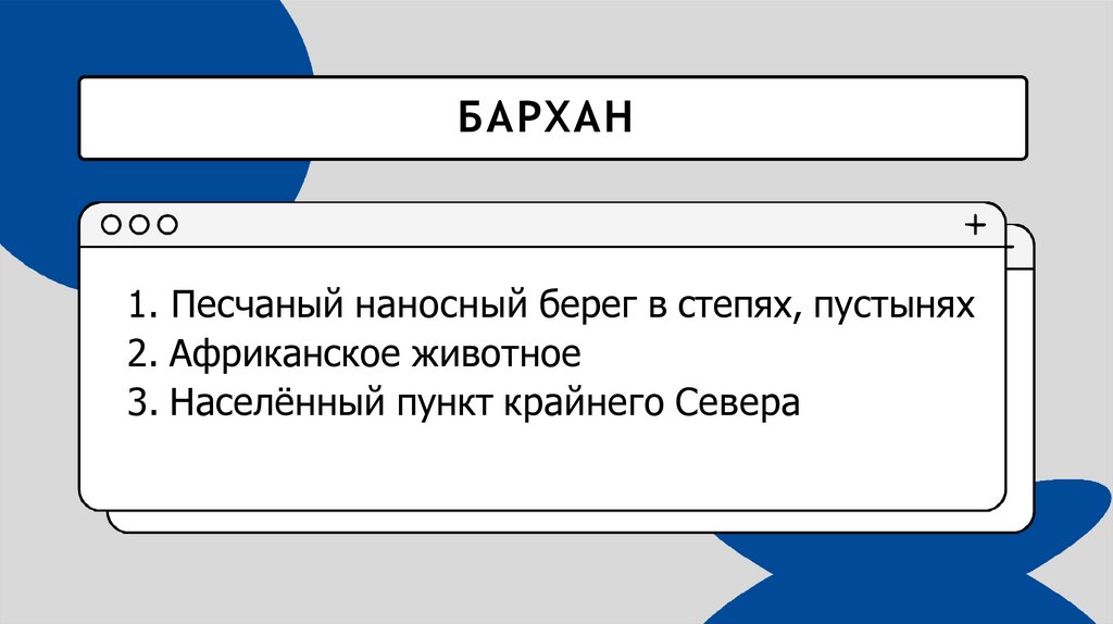 1. Песчаный наносный берег в степях, пустынях2. Африканское животное