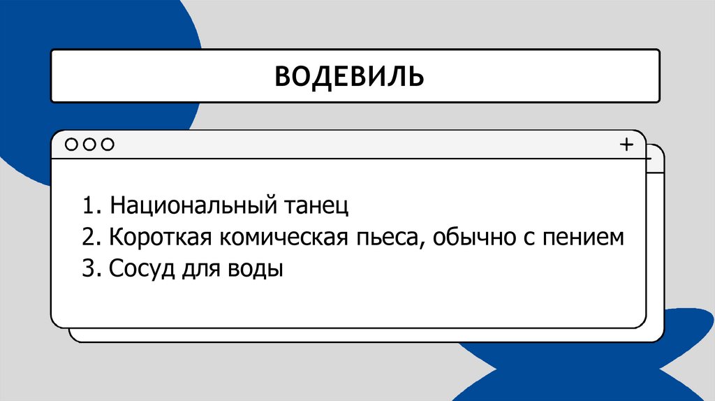 1. Национальный танец2. Короткая комическая пьеса, обычно с пением