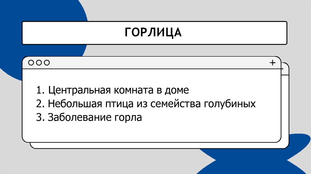 1. Центральная комната в доме2. Небольшая птица из семейства голубиных