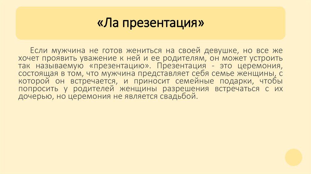 «Ла презентация»Если мужчина не готов жениться на своей девушке, но все же