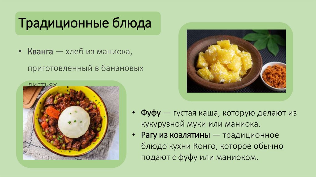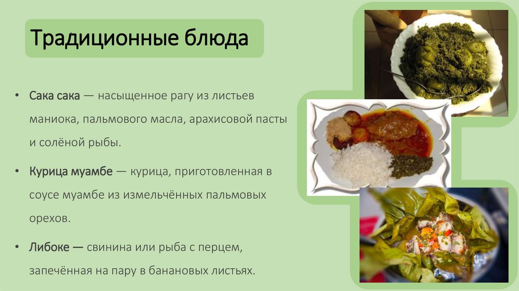 Традиционные блюда• Сака сака — насыщенное рагу из листьев