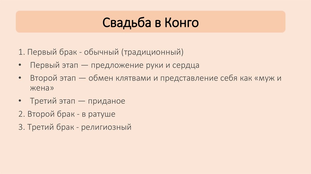 Свадьба в Конго1. Первый брак - обычный (традиционный)