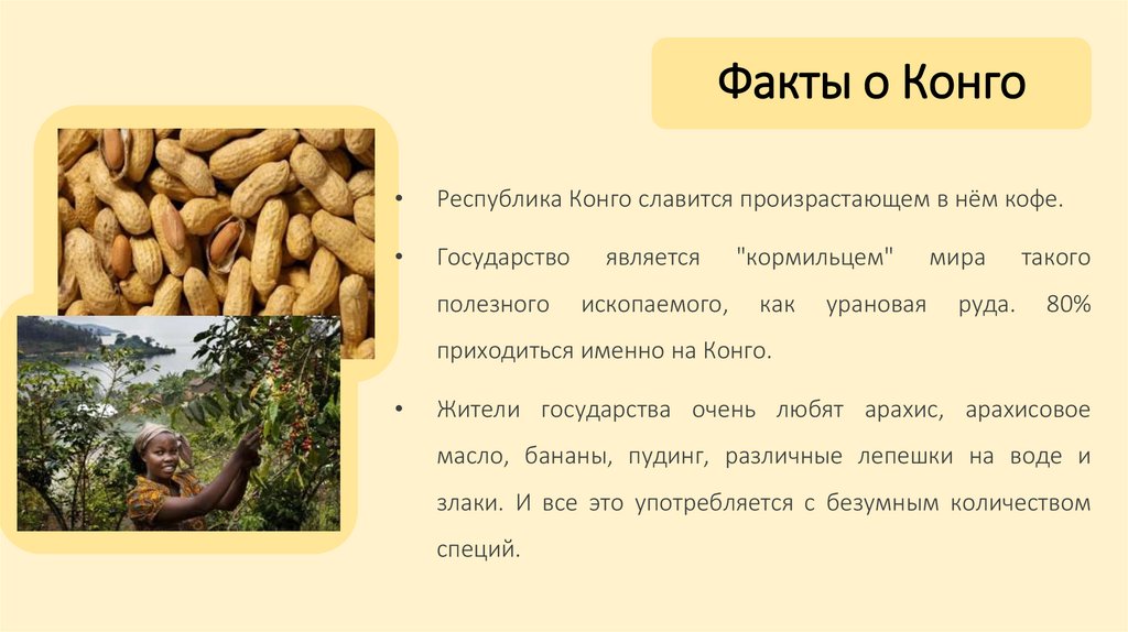 Факты о КонгоРеспублика Конго славится произрастающем в нём кофе.
