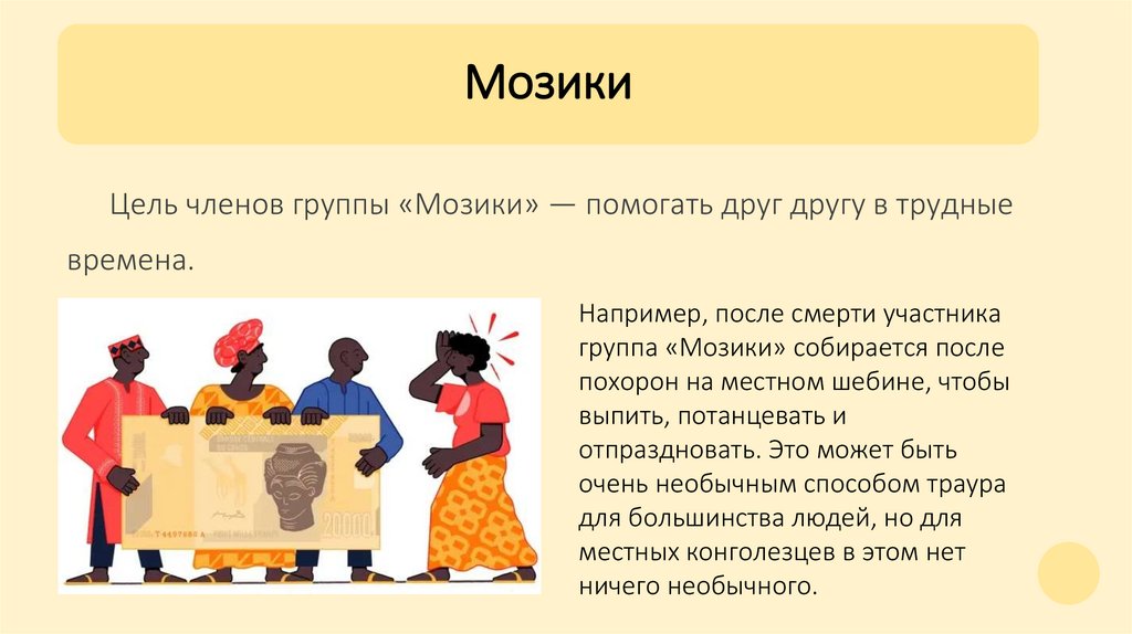 МозикиЦель членов группы «Мозики» — помогать друг другу в трудные