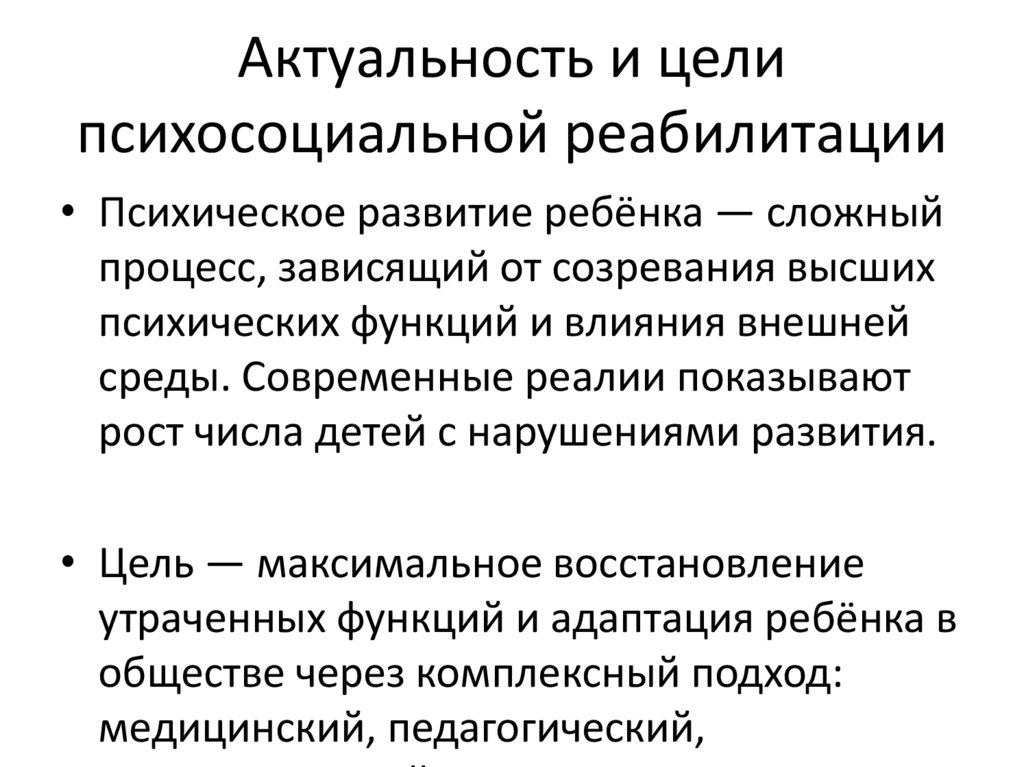 Актуальность и целипсихосоциальной реабилитации