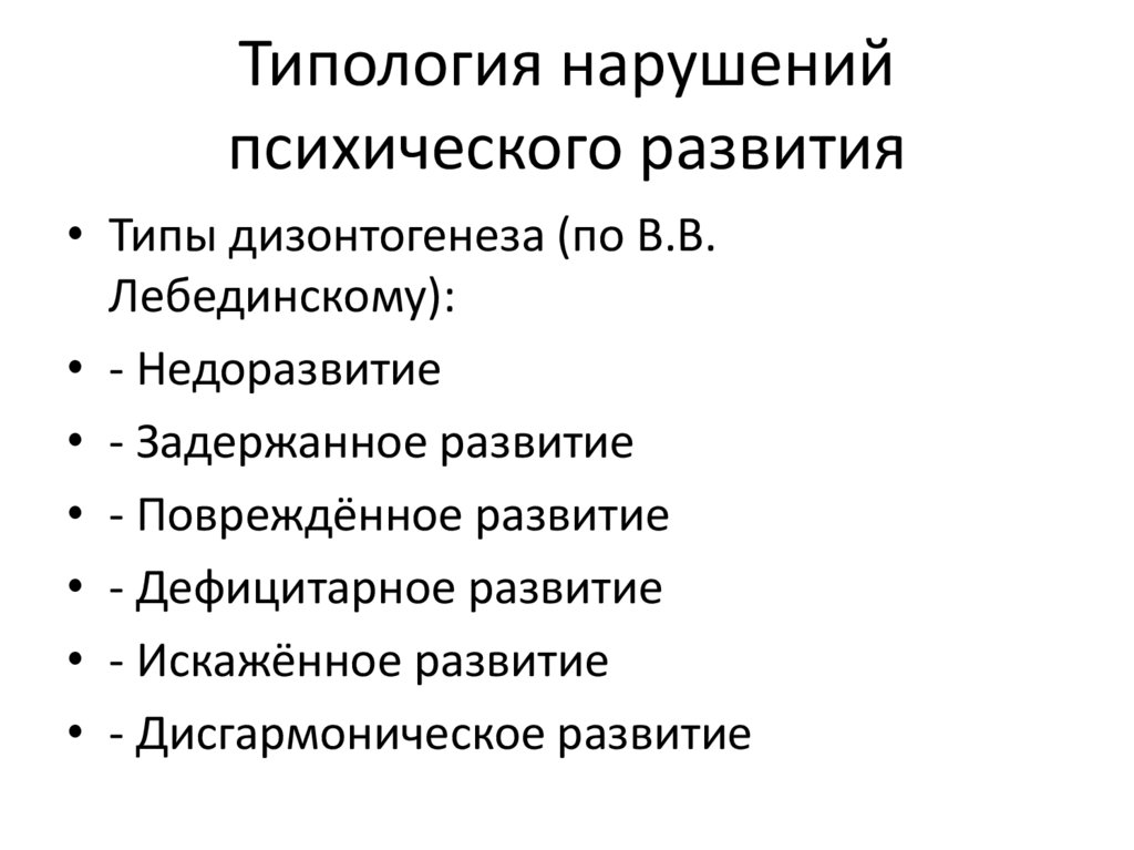 Типология нарушенийпсихического развития