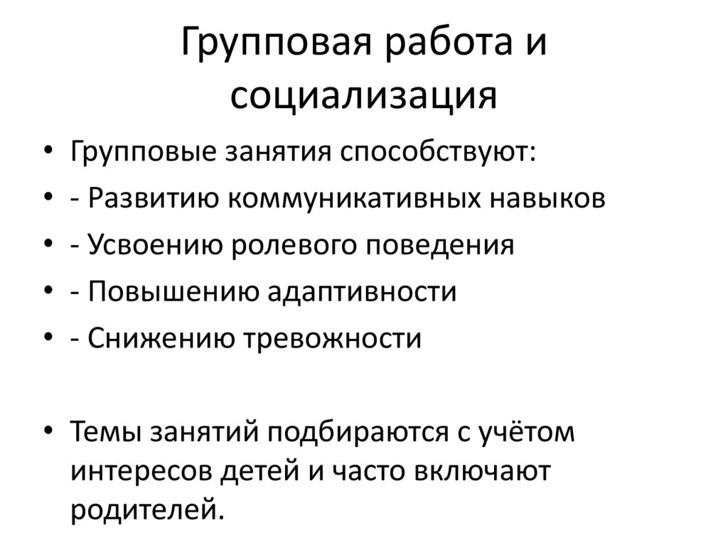 Групповая работа исоциализация