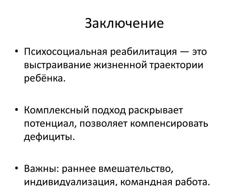 Заключение• Психосоциальная реабилитация — это
