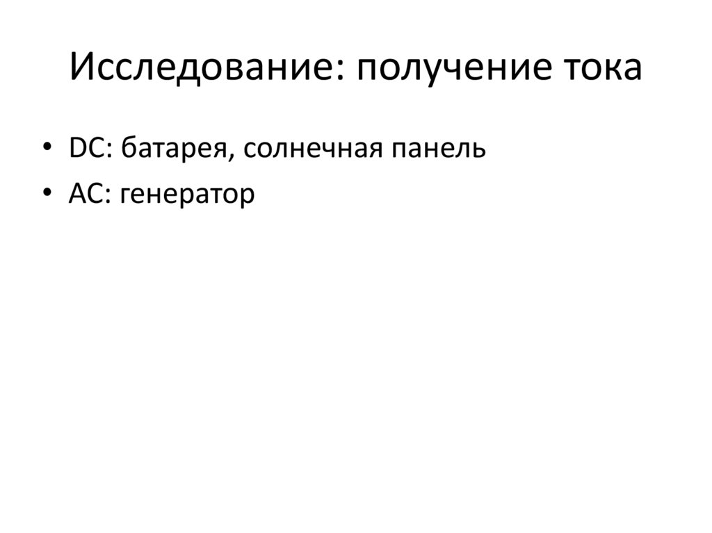 Постоянный и переменный ток• DC (постоянный ток): ток течёт в одном