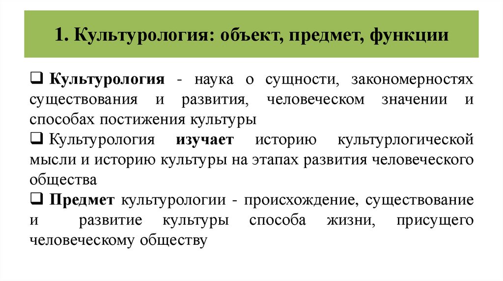 Культурология - наука о сущности, закономерностяхсуществования и развития, человеческом значении и