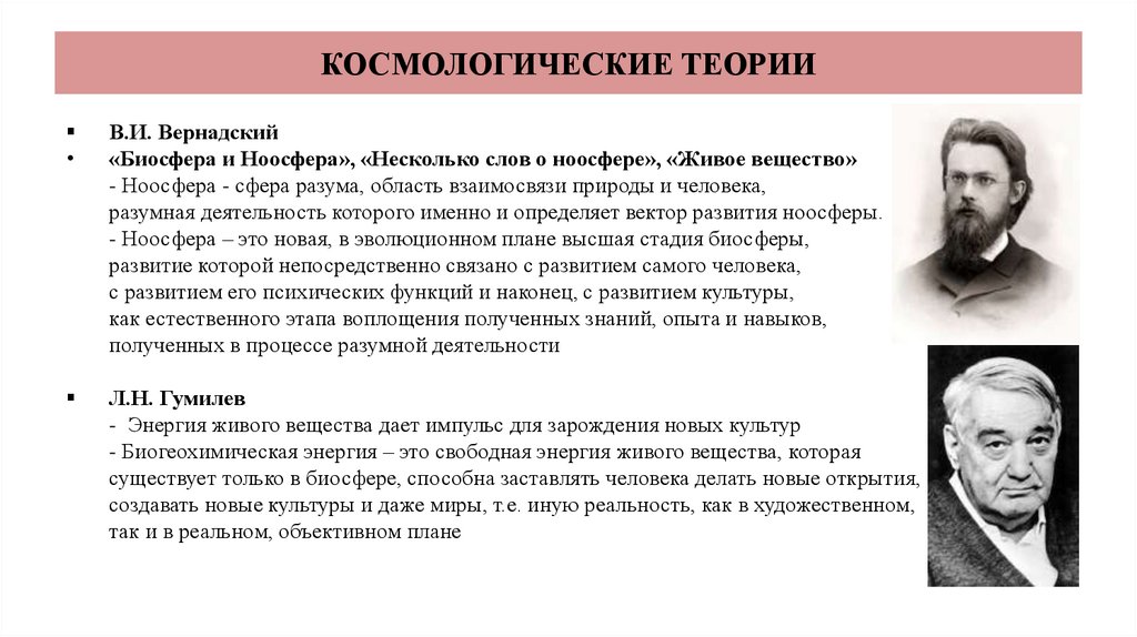 Космологические теории (В.И. Вернадский, Л.Н. Гумилев)