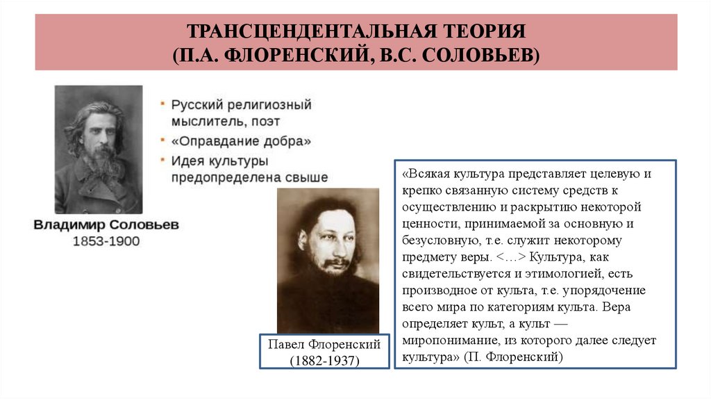 14. ТРАНСЦЕНДЕНТАЛЬНАЯ ТЕОРИЯ (П.А. ФЛОРЕНСКИЙ, В.С. СОЛОВЬЕВ)