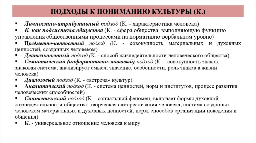 3. ПОДХОДЫ К ПОНИМАНИЮ КУЛЬТУРЫ (К.)