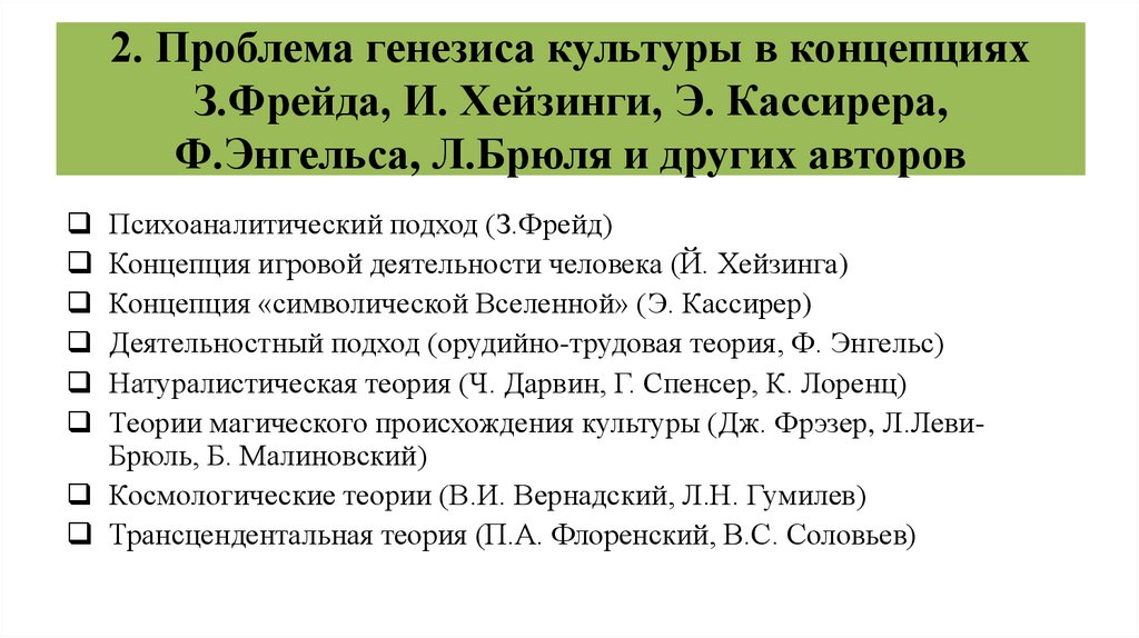 2. Проблема генезиса культуры в концепцияхЗ.Фрейда, И. Хейзинги, Э. Кассирера,