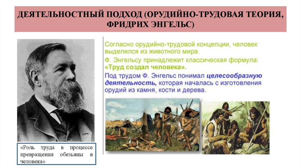 10. ДЕЯТЕЛЬНОСТНЫЙ ПОДХОД (ОРУДИЙНО-ТРУДОВАЯ ТЕОРИЯ, ФРИДРИХ ЭНГЕЛЬС)
