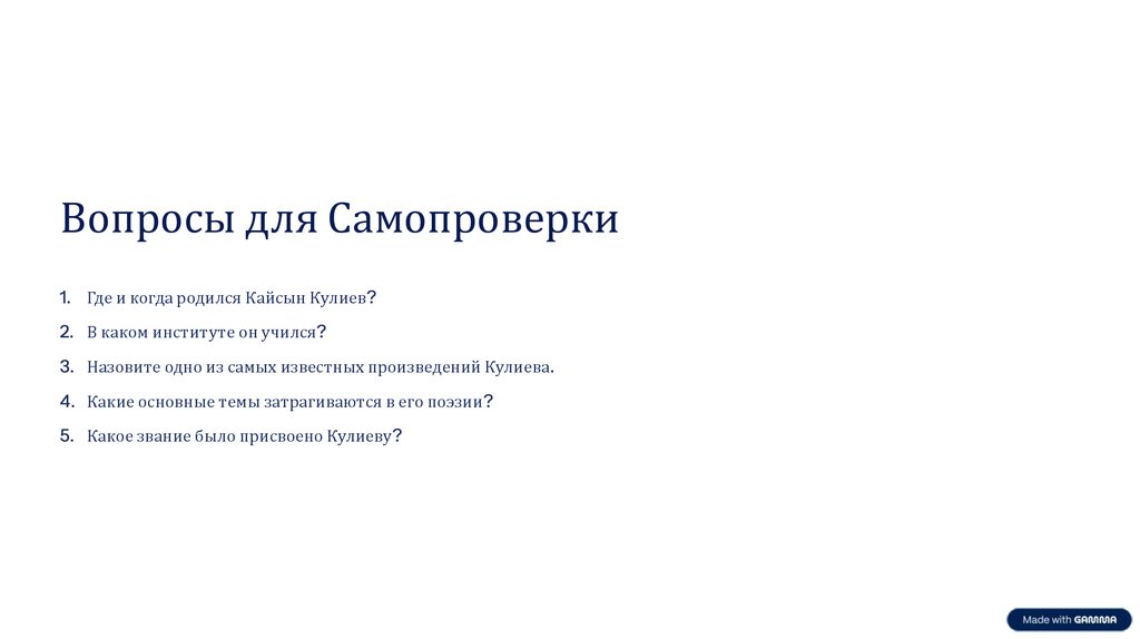 Вопросы для Самопроверки1. Где и когда родился Кайсын Кулиев?