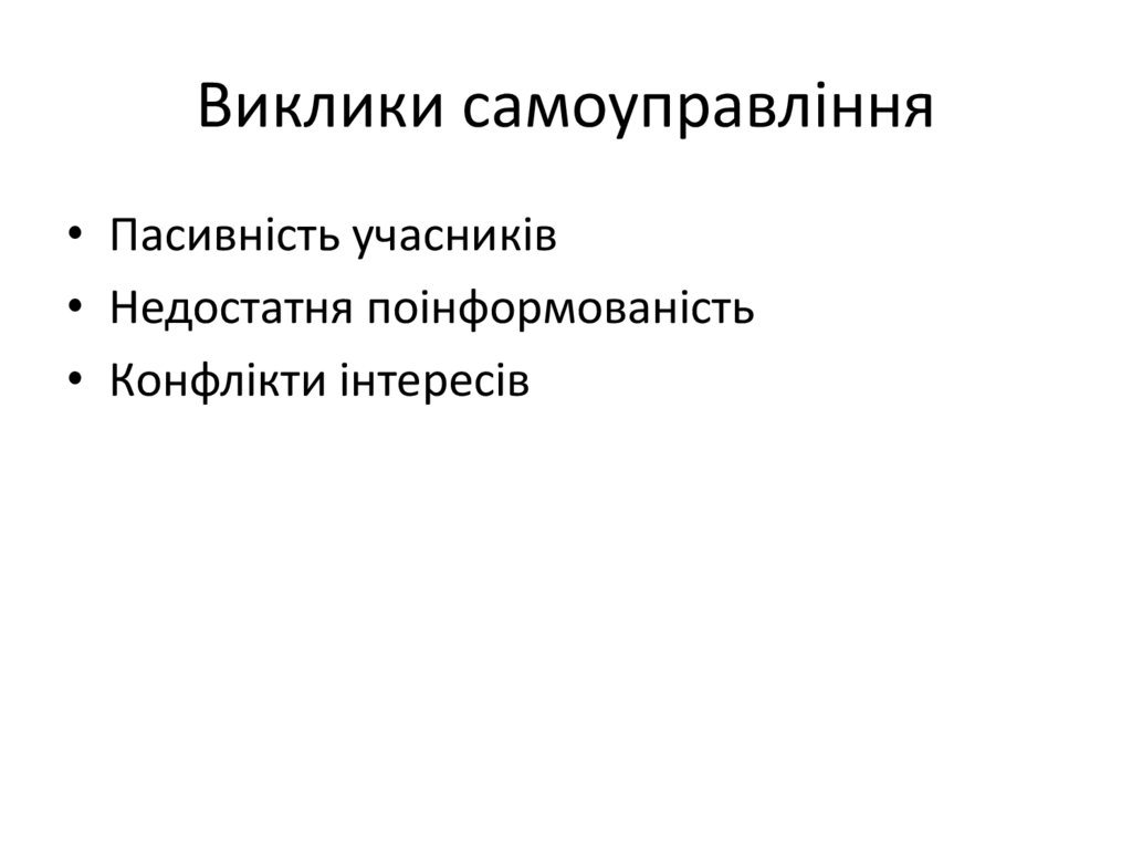 Роль самоуправління в громаді• Залучення людей до прийняття рішень