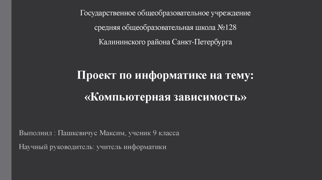 1. Государственное общеобразовательное учреждение средняя общеобразовательная школа №128 Калининского района Санкт-Петербурга