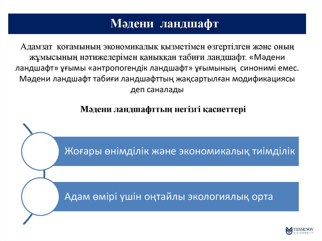 Мәдени ландшафтАдамзат қоғамының экономикалық қызметімен өзгертілген және оның