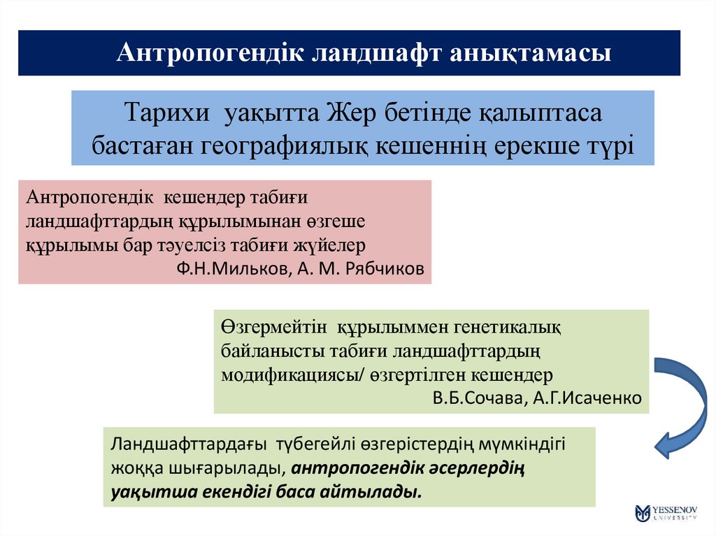 Сонымен, антропогендік ландшафттарға «адам белгілі бір әлеуметтікэкономикалық функцияларды жүзеге асыру үшін әдейі, мақсатты түрде