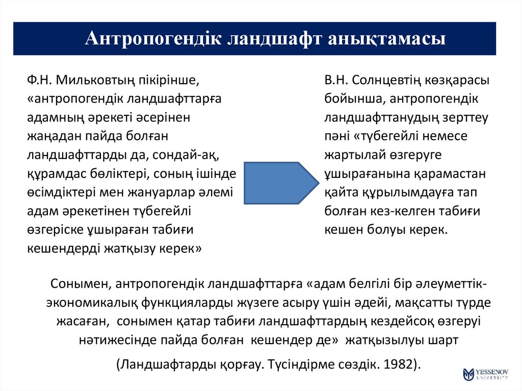 (Ландшафтарды қорғау. Түсіндірме сөздік. 1982).