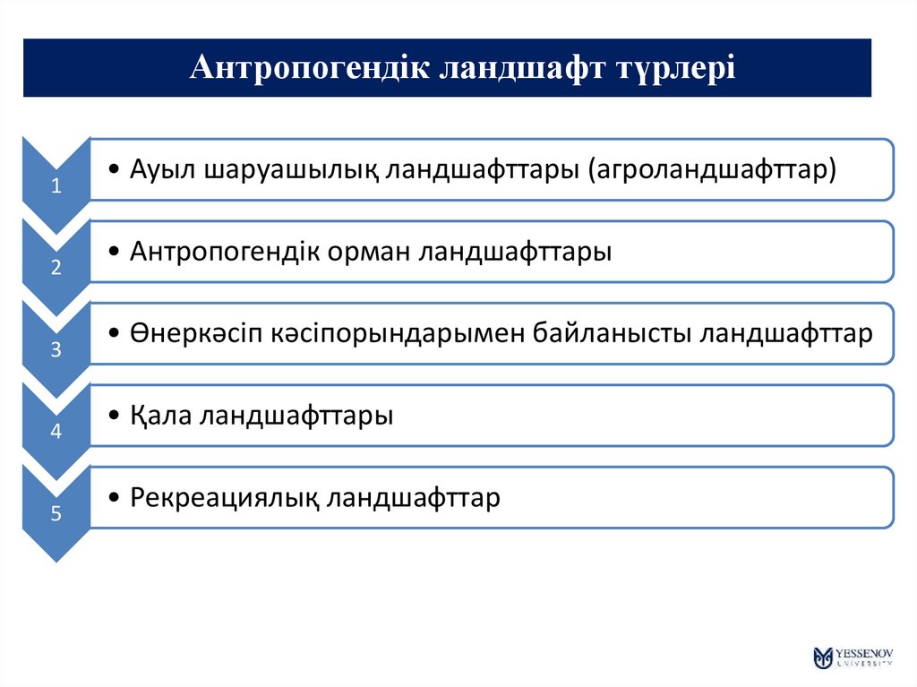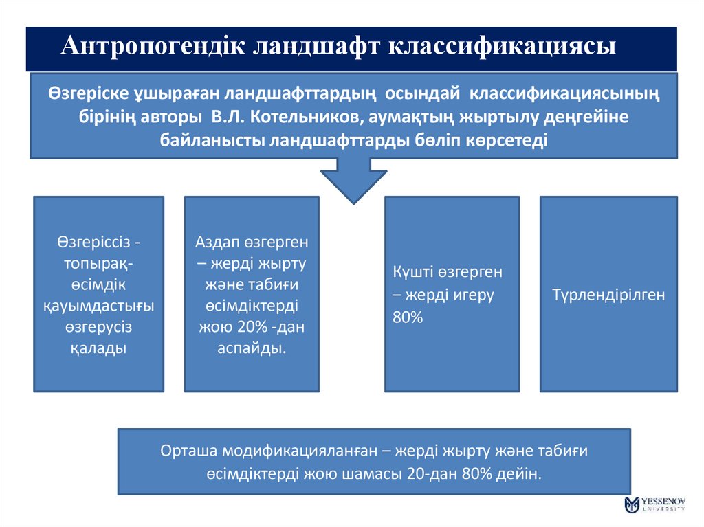 Антропогендік ландшафт классификациясыӨзгеріске ұшыраған ландшафттардың осындай классификациясының