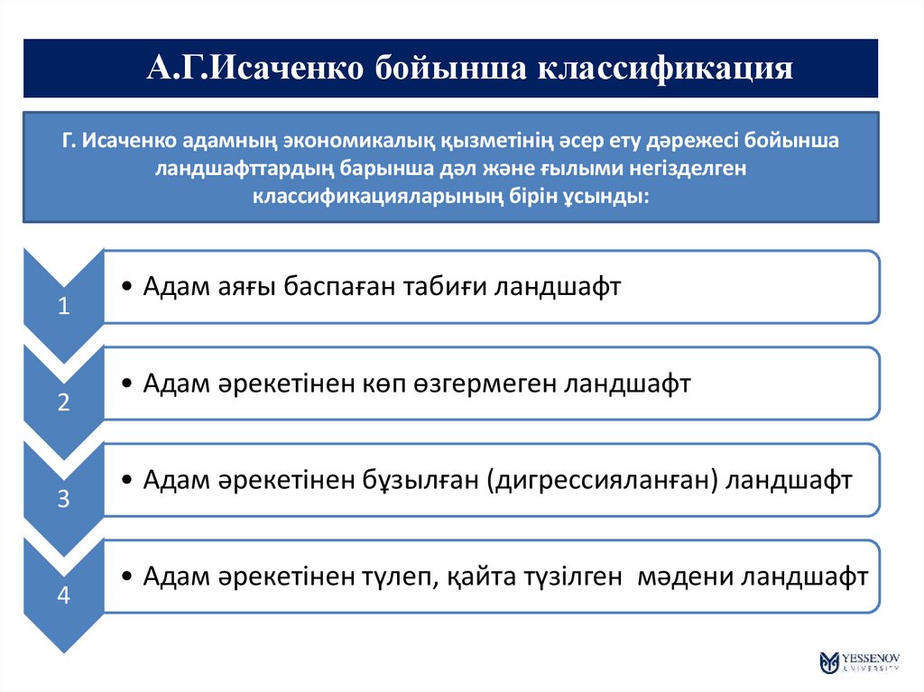 А.Г.Исаченко бойынша классификацияГ. Исаченко адамның экономикалық қызметінің әсер ету дәрежесі бойынша