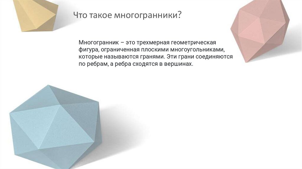 Что такое многогранники?Многогранник – это трехмерная геометрическая