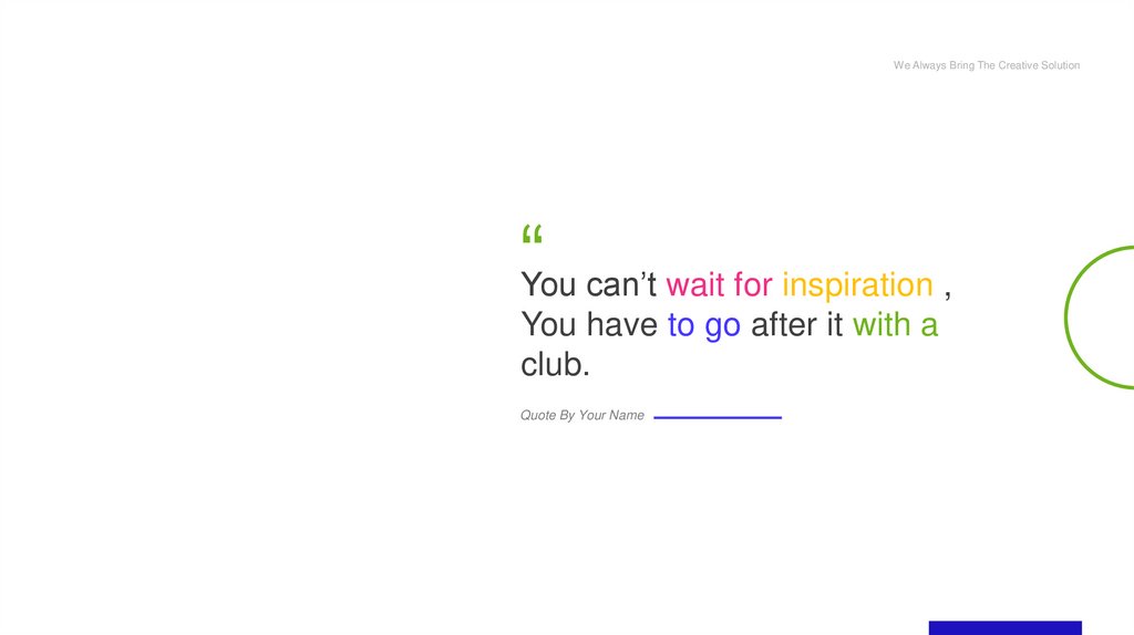 We Always Bring The Creative Solution“You can’t wait for inspiration ,