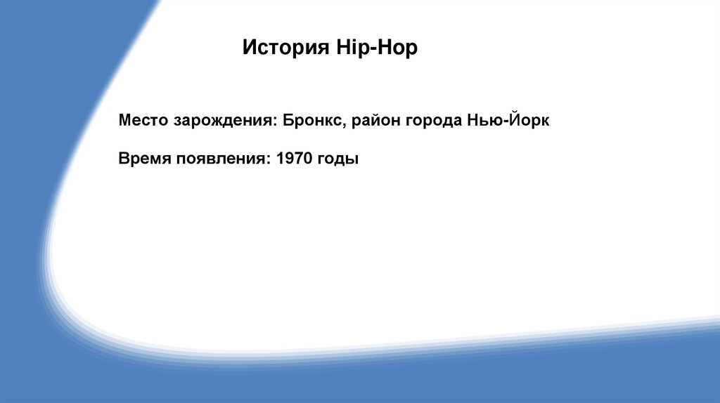 История Hip-HopМесто зарождения: Бронкс, район города Нью-Йорк