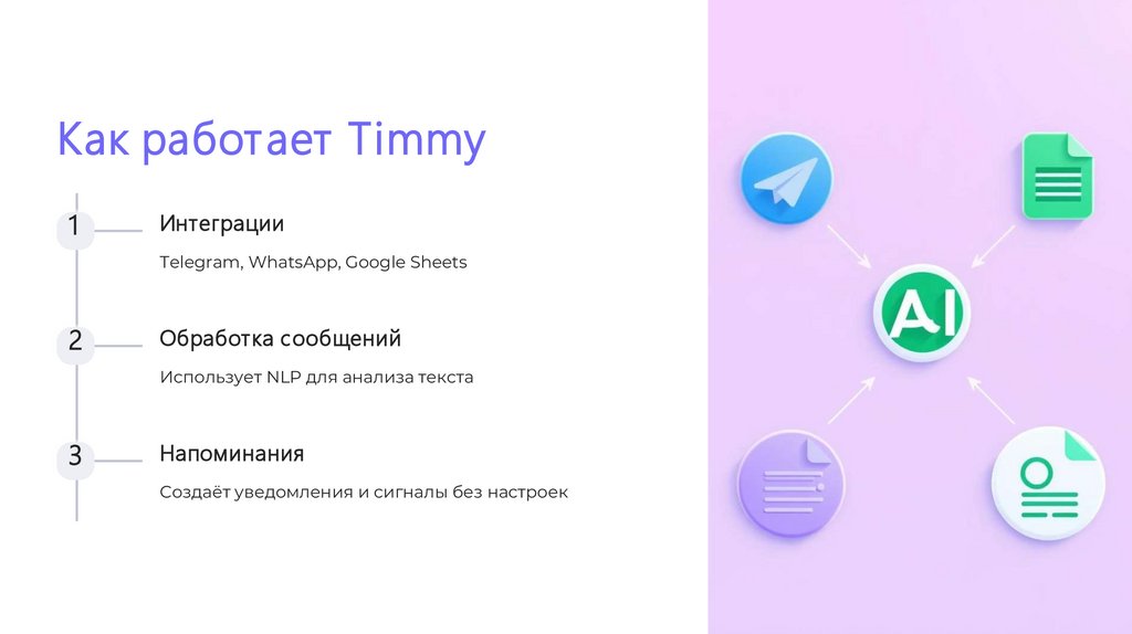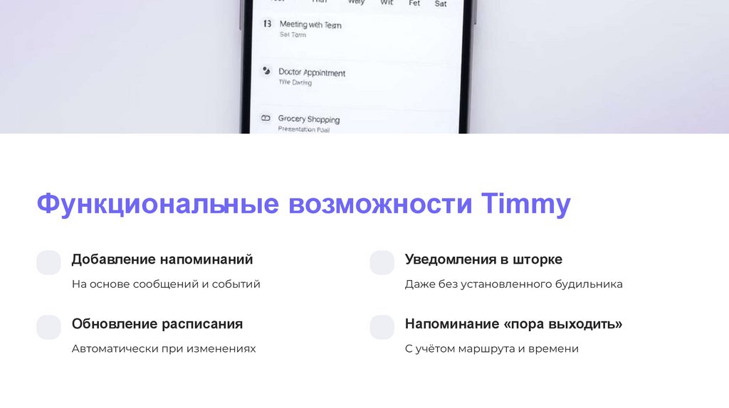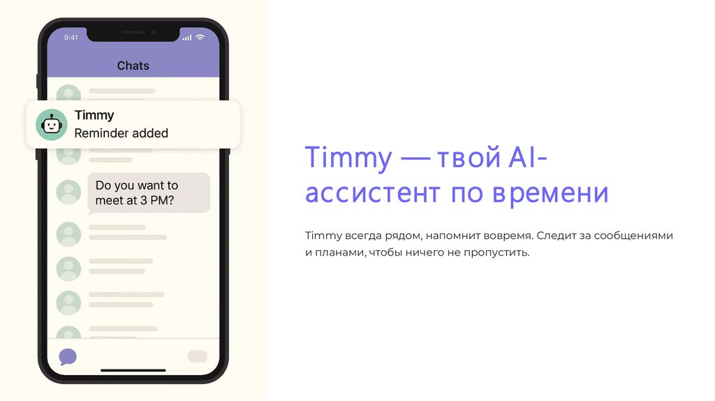 Timmy — твой AIассистент по в ремениTimmy всегда рядом, напомнит вовремя. Следит за сообщениями