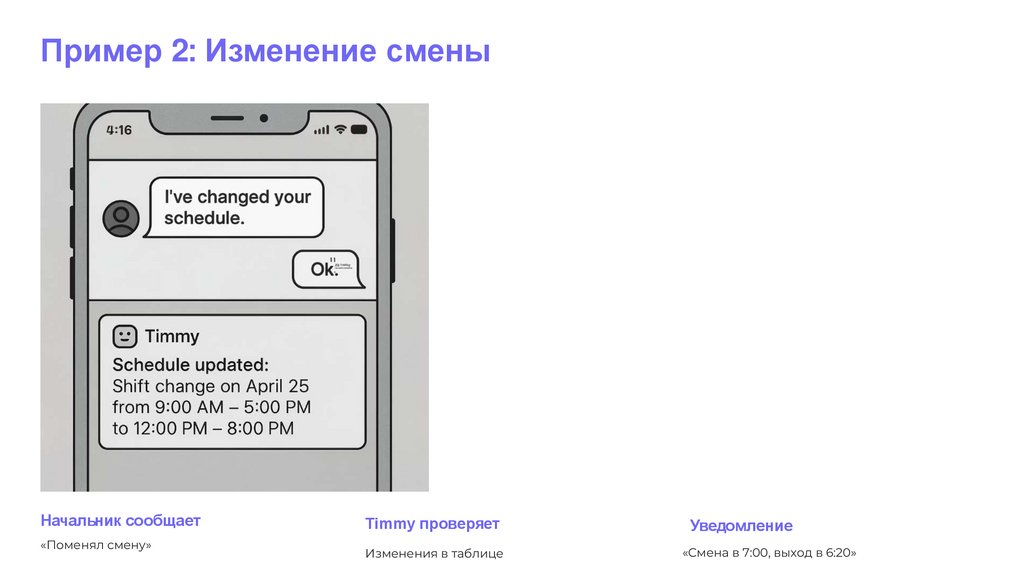 Пример 2: Изменение сменыНачальник сообщает