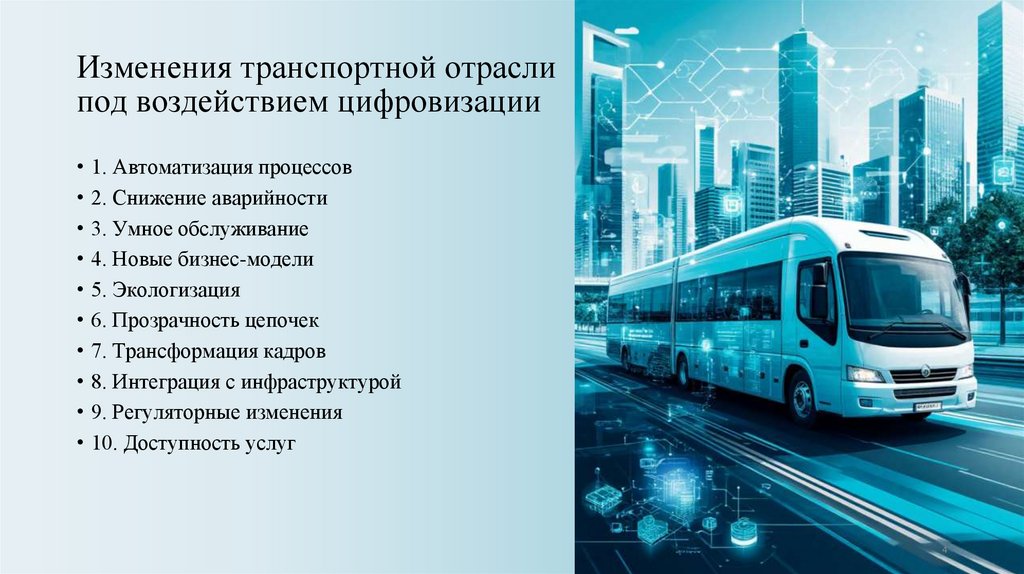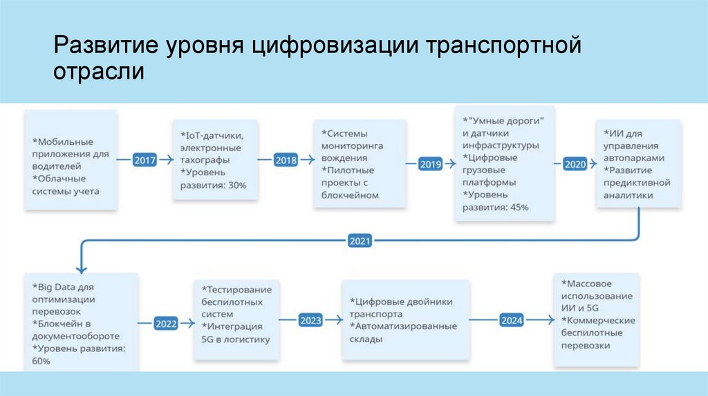 высокий уровень цифровизации, который заключается во внедрении IoT-систем, прогнозной аналитики и блокчейнрешений для оптимизации логистики, мониторинга транспорта и автоматизации документооборота.