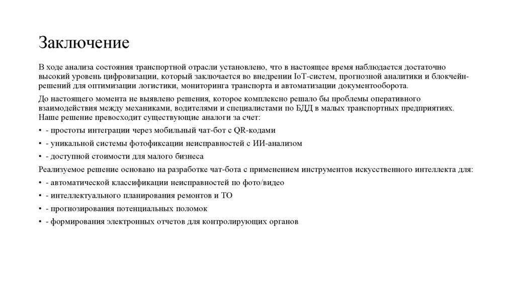 ЗаключениеВ ходе анализа состояния транспортной отрасли установлено, что в настоящее время наблюдается достаточно