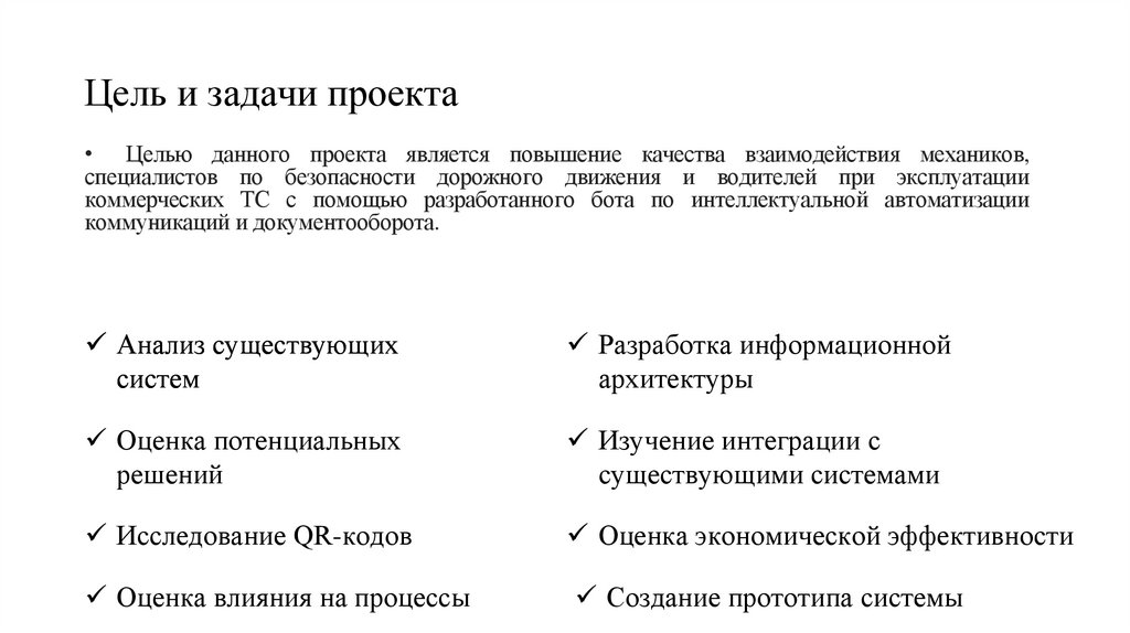 Цель и задачи проекта• Целью данного проекта является повышение качества взаимодействия механиков,